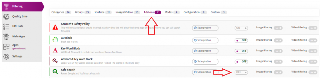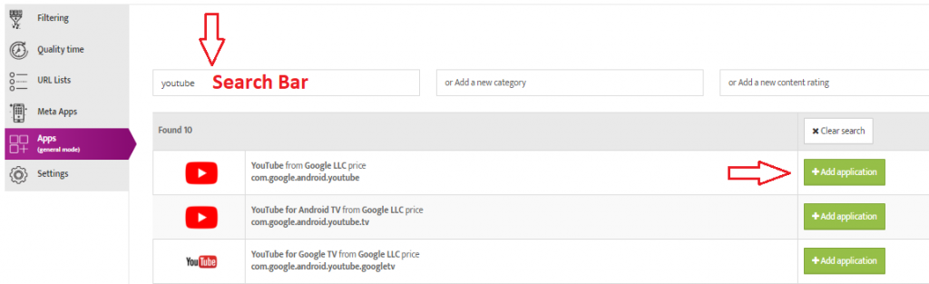 Important: By allowing the youtube application on to an android device, it will make youtube completely unfiltered so we recommend to allow only the youtube website which can be filtered.